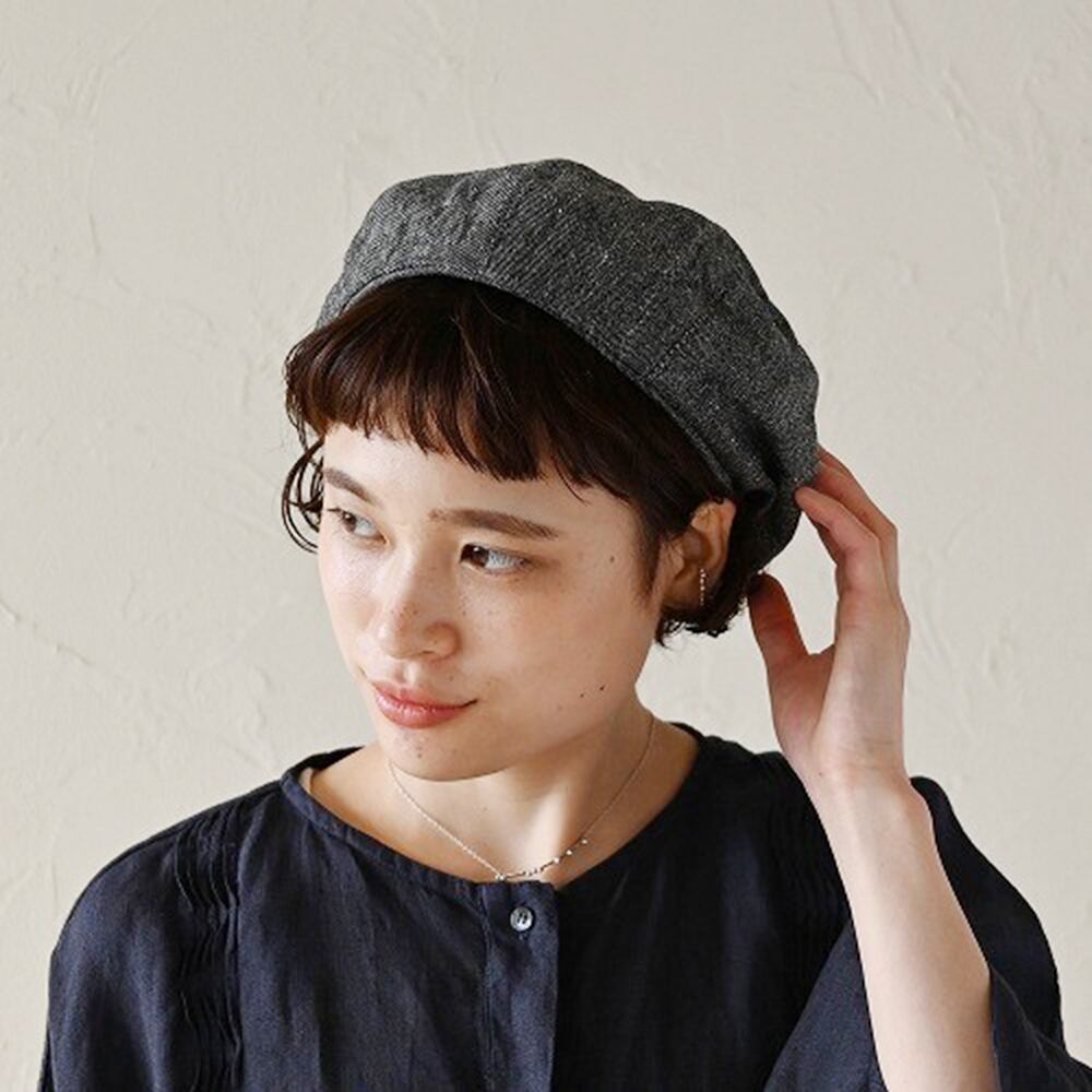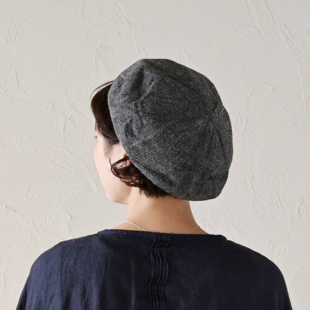 手織りの生地がシンプルなデザインのベレー帽に、味わいを持たせてくれています。